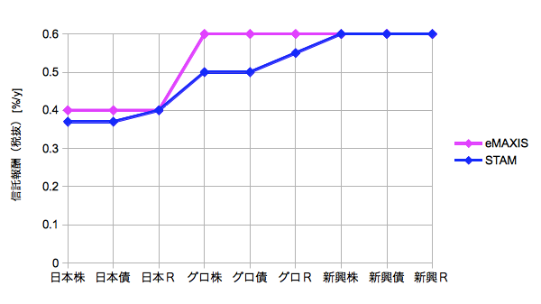 次にいくつかのファンドでSBIの指標、楽天の指標を並べてみます。
