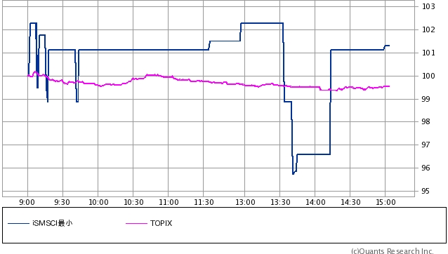 値が「飛ぶ」んですよね。振幅にして6%もの大きな変動です。日中の「指数」の動きがわからないため推定となりますが、複数の銘柄に分散されているなら普通このような現象は起こらないと考えています。つまりこれは指数ではなく取引価格だけが飛んでいると理解しています。