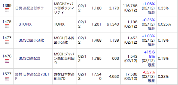 2016/02/12時点のロジカルETFの様子です(Morningstar Japanより)。中でも高配当ETFの基準価額と取引価格がかなり上方に乖離しているようです。