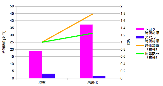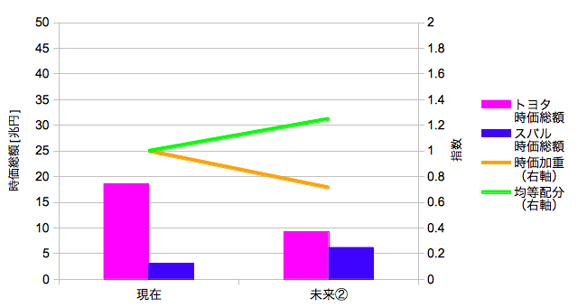 現在の時価がウェイトにこれだけの差を付けるだけの未来を保証するのか?