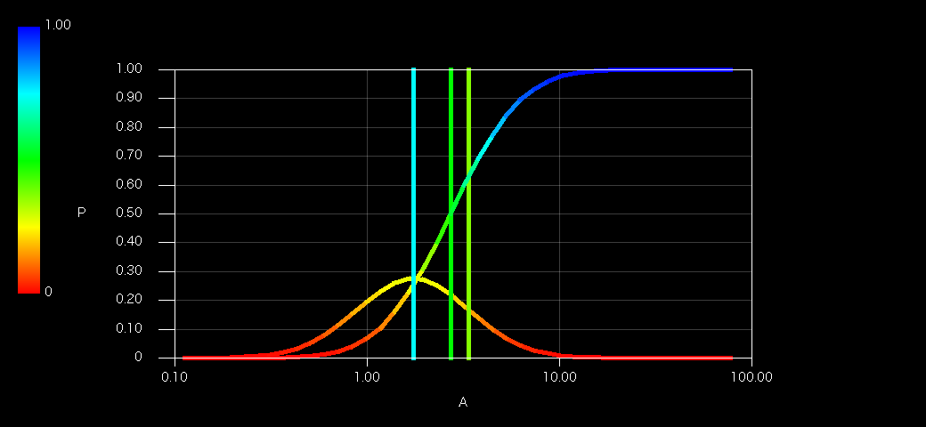 市場平均にとっての課題は「時価」という因子をどのように組み込むかでしょうか。時価を過去のリターンの結果(=相乗平均)としてS/N最大となるような極値を定式化すればよいのでしょうか。あるいは、例えば上図のような確率分布において、時価比率の極限はどの位置に収束するのかを示せばよいのではないか、と考えています。
