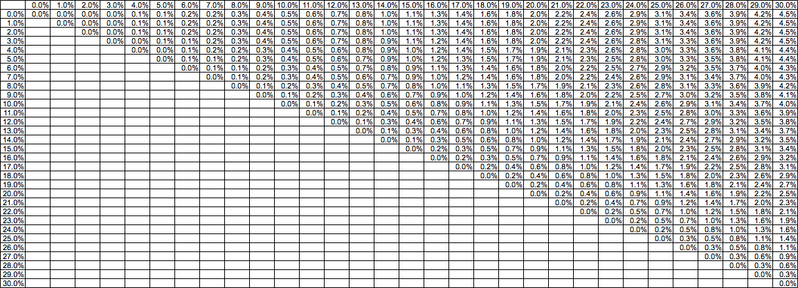 シグマをx%からy%に低減するとz%のコスト削減と同等の効果が得られることを示すものです。例えばシグマ20%の指数を19%に軽減するだけで運用管理費用の伸び代と同じ約0.2%の相乗平均リターン改善効果になる。最適化でもスクリーニングでも、方法はいくつか考えられる。