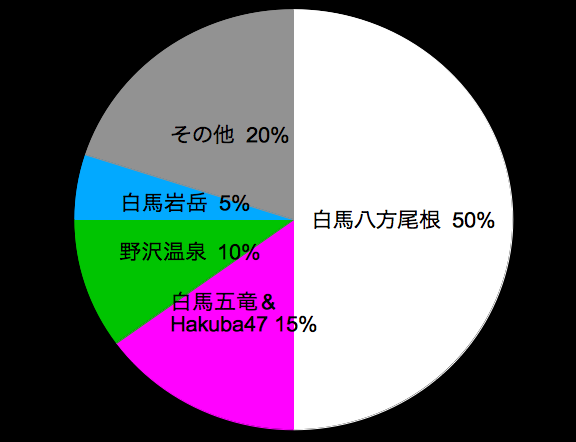 このGWで私の2017-2018雪山シーズンは終戦となり物寂しいインデックスドライバーですが、私の行くスキー場の割合をアセットアロケ的に描いてみました。