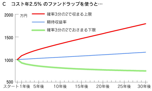 ラップ口座のコストの影響が時間リスクで表現されています。長期投資で重要な考え方だと思うので引用させていただきたいと思います。