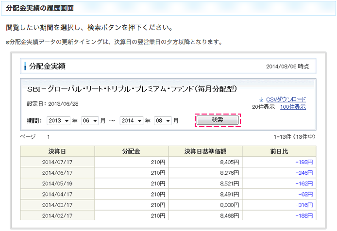 サービス拡充ということで、SBI証券で投信の「基準価額」「分配金実績」の履歴が見られるようになったようです。