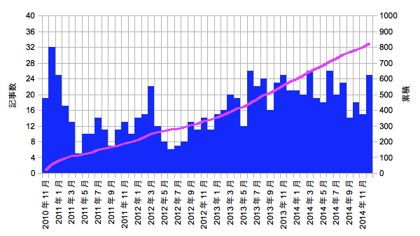 このブログの「アーカイブ」の数字をグラフにしたものです。計画的なものは無く思いついたら書くという感じでやってきた結果です。実際はくだらない記事や雪山レポート等で相当かさ上げされていると思います。それでも諦めずにやってこれた証ということで、率直な感想としては「暇つぶしの割によくここまで来たな」という印象です。