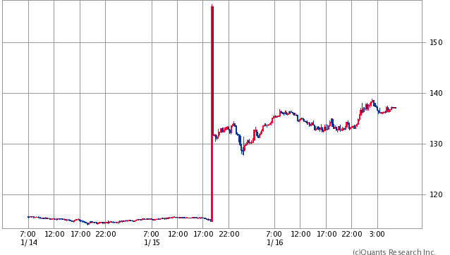 【スイスフラン/円(2015/01/14-2015/01/16。SBI証券より)】