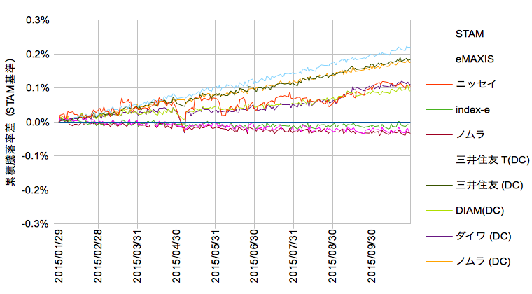 【累積騰落率差(2015/01/29-2015/10/30)】