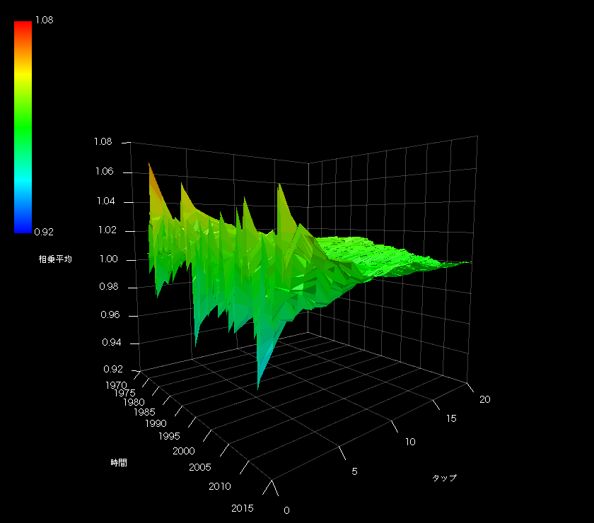(構成要素の変動でみれば相乗平均は侵食されているが、イコールウェイトという集合でみれば相加平均となる、という解釈)