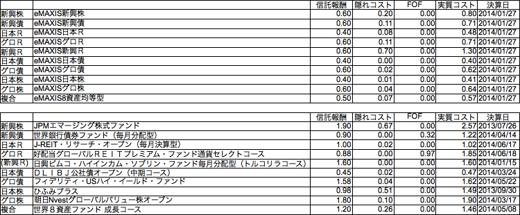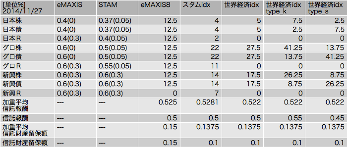 次にいくつかのファンドでSBIの指標、楽天の指標を並べてみます。