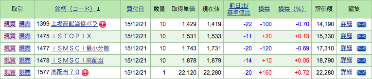 もともと価格の市場カイリや配当分配のあるETFはポートフォリオの対象ではないのですが、統計インデックスの振舞いを自分の口座の中で確認することが目的です。何かおもしろい結果があれば今後ブログで報告したいと思います。