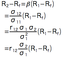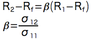 相加平均が共分散にリニアに応答すると仮定して、R1をmarketの相加平均、R2を着目する要素の相加平均、Rfを「リスクフリーレート」と置くと「CAPM」の定義より