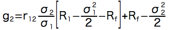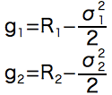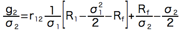 ちなみに共分散によらない一般の「リターンを蝕むリスク(シグマによる相乗平均の減価)」タイプの法則は以下のようになります。