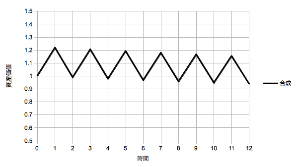緑ライン:相加平均=-0.5%、標準偏差=0%