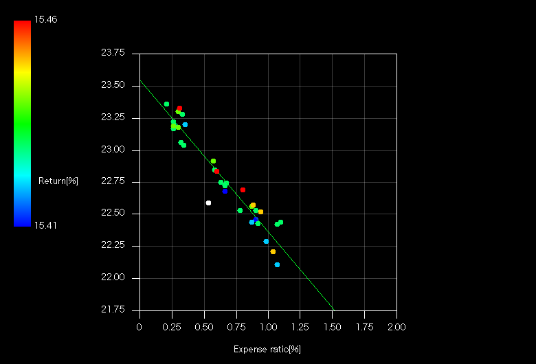 やっていることは新年のくだらない株価予想と変わらないですね。例えるなら同じ指数関数である半導体の法則(トランジスタの集積率が約2年で2倍)の方もそれに合わせて研究者や技術者が努力と思考を重ねた結果であり、何もしない外野が無責任に騒ぎ立てても何も変化しない。だから運用管理費用ばかりに固執することが本質ではないと考えられます(他人任せに慣れると自律心が失われる恐れがある)。