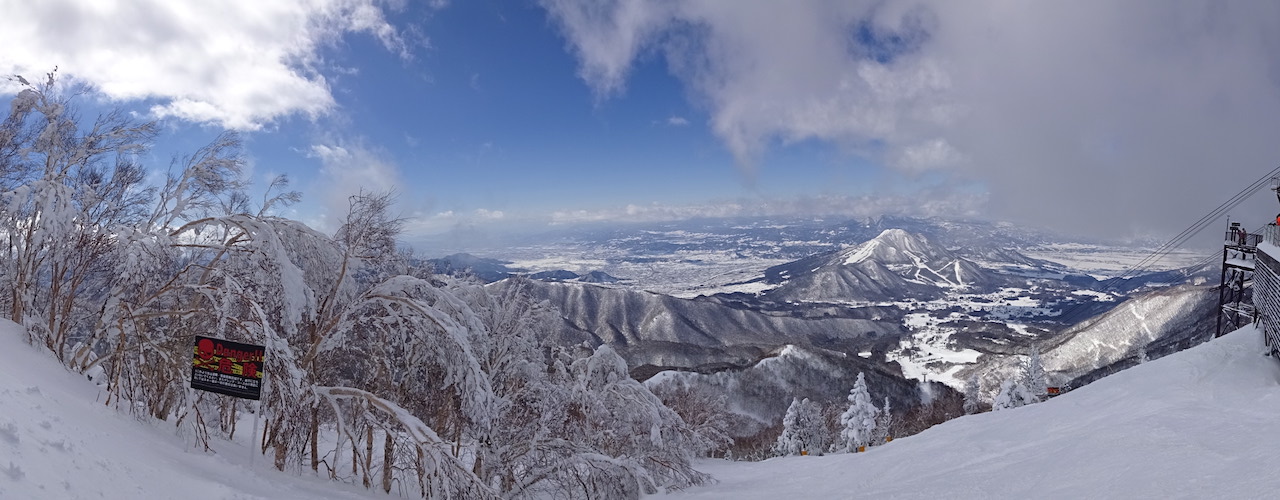あとロープウェイ終着点からの景色も良いです。また上部エリアでは樹氷が見られました。雪質もよく、なんせ雪が雪印してましたから。なお時期が当たったからか下部エリアの雪質も良かったです。