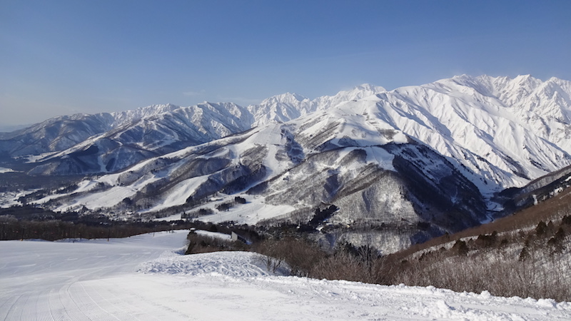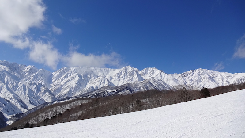 from IWATAKE。正面のスキー場がHAPPOですね(その向こうにHKB47や五竜岳、鹿島槍ヶ岳も見えます)。