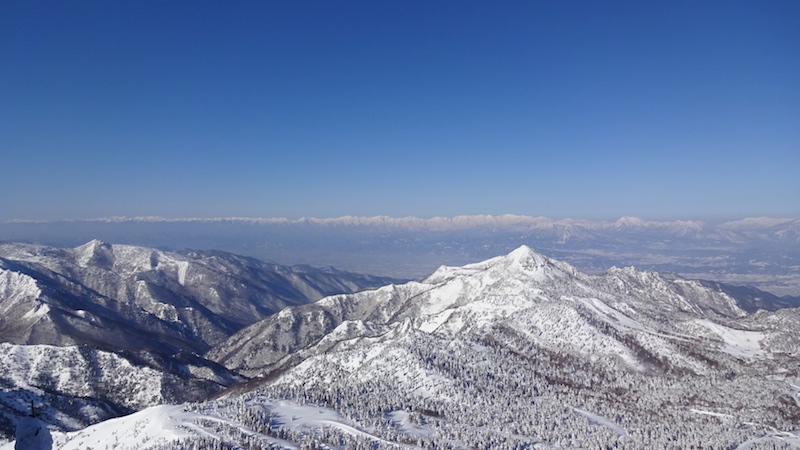 画像は横手山から北アルプス方面を見たものです。笠岳の真上のちょっと左に白馬三山がいます(コンデジの画質じゃ厳しいですね)。今季も絶景を目に焼き付けに行きたいと思います。