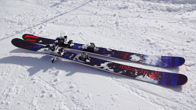軽く滑りやすい。96mmの幅を感じない。カービングOK。ボコボコで跳ねるのはバンブーのほかカーボンが入っているから?コブ可。