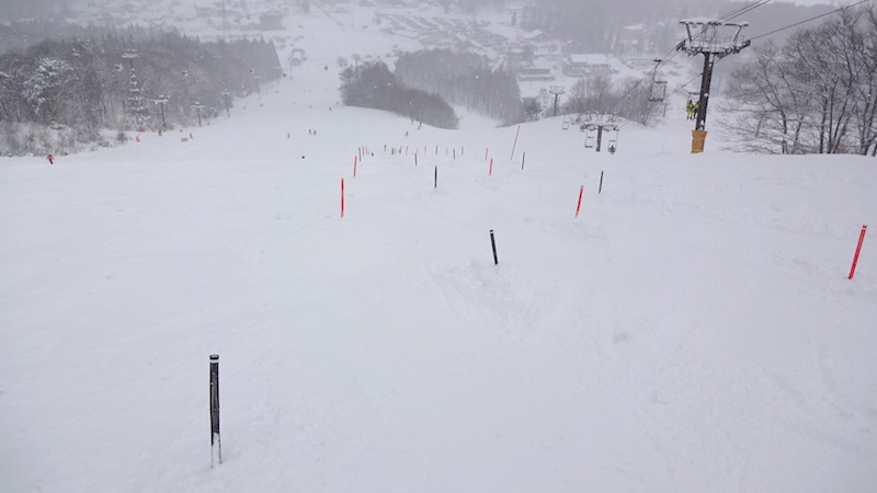 雪質:新雪圧雪の片栗粉のようなキュッキュ音鳴る雪。新雪自体は10cmほど。ただし硬いところもある。下地は硬い
