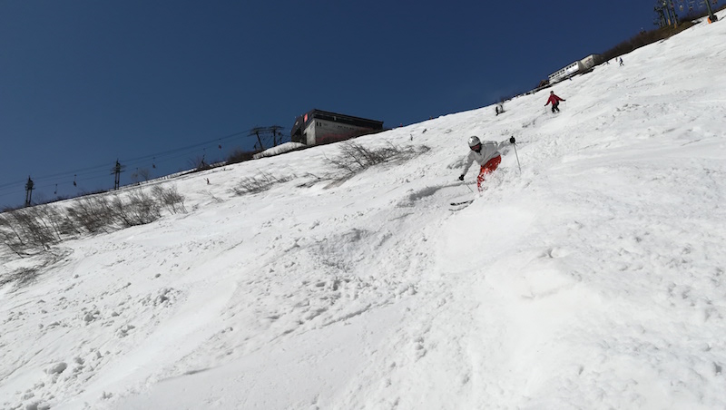 例えば冒頭の写真は白馬八方尾根スキー場の兎平ペアリフト。ウサギ平や黒菱(下図)のコブを攻めて疲労がたまるところで思わずウトウト。あぶないあぶない。