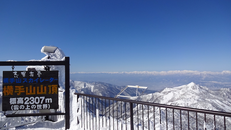 冒頭の画像は志賀高原・横手山スキー場の山頂です。日本で通常営業しているスキー場で最も標高の高い場所です。右手前に見えるのが笠岳(笠ヶ岳)、奥には遠く北アルプスが壁のように立ちはだかっています。