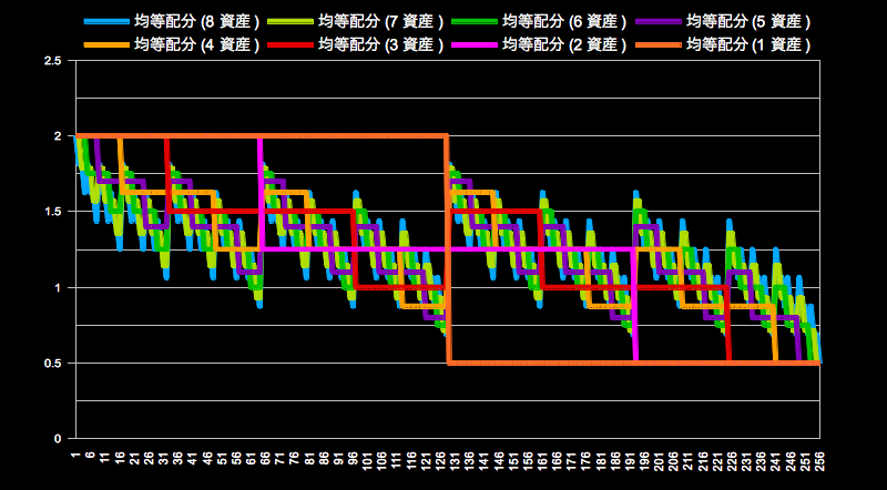 【n資産均等型の振る舞い(256通り)】