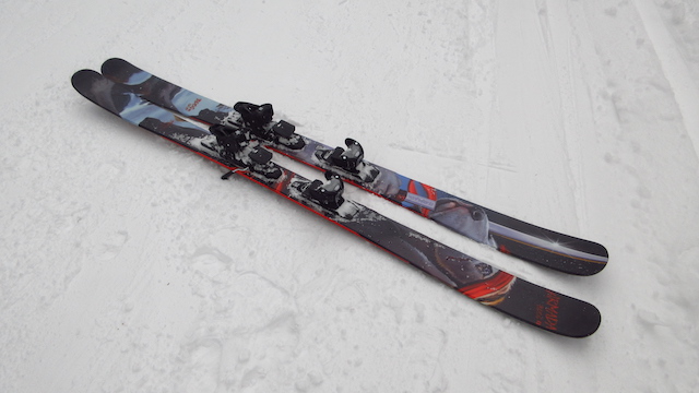 最初の頃に一度レポしていますが改めて。メインで使っています。ビンはチロリアアタック13、セットバック-5cm。試乗会ではこれが私の基準になります。「フリーランでもコブでも扱いやすく、たまにパークにも入れるスキー」を求めて試乗会に参加していますが、なかなかこれを越える板に出会えません。カービングでのエッジのグリップは普通の基礎・レース板に比べて緩いんだろうけど、私にはこれくらいルーズな方が扱いやすい。Rもちょうどいい。キャンバーロッカーで引っ掛かりが少ないことに大いに助けられていると思います。ワンサイズ長めの177cm(前後が反っているので地面に投影した長さは175cm)のためコブでの取り回しにくさは多少ありますが、高速での安定性はいいと感じます。