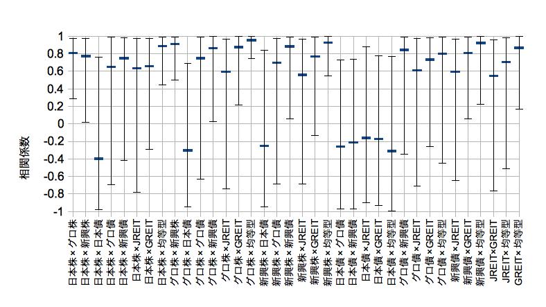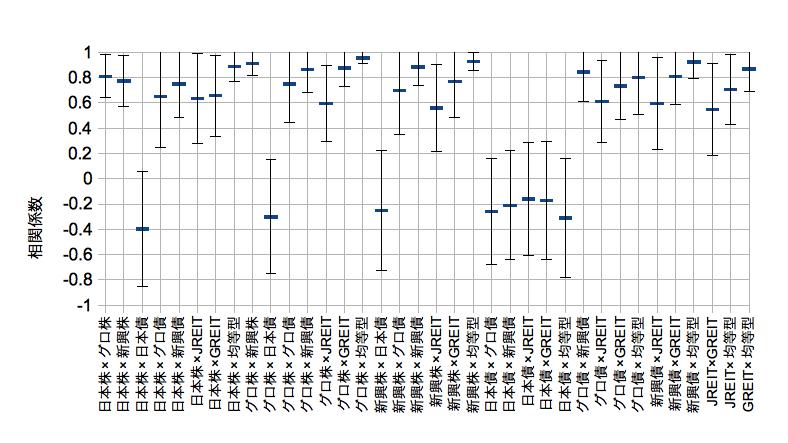 ひと月(20日)程度のタップで相関係数を出していくとかなり大きく変動します。
