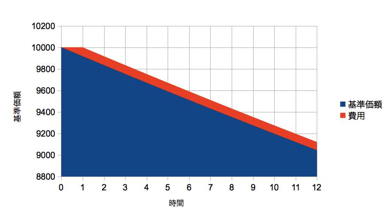 A:単位期間内の平均基準価額(青の面積の時間平均。正確には0から11までの時間平均)