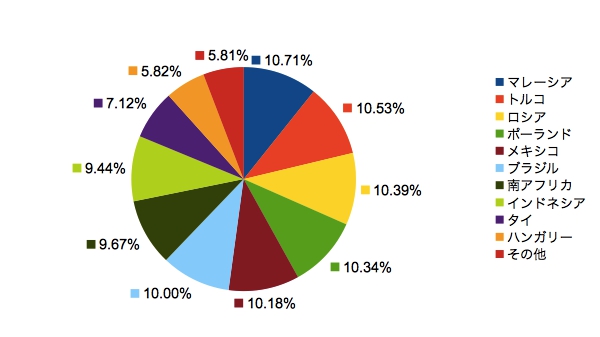 この5カ国はほぼ10%の上限にあり、法則性がないものに対して合理的であると考えます。他にマレーシア、ロシア、ポーランドが10%です。