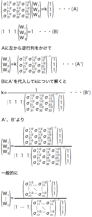「σW=const」のリスク配分均等型ポートフォリオの共分散ベースのウェイトを求める一般式を考えます。