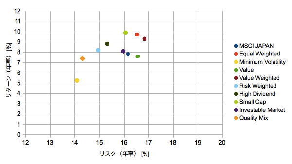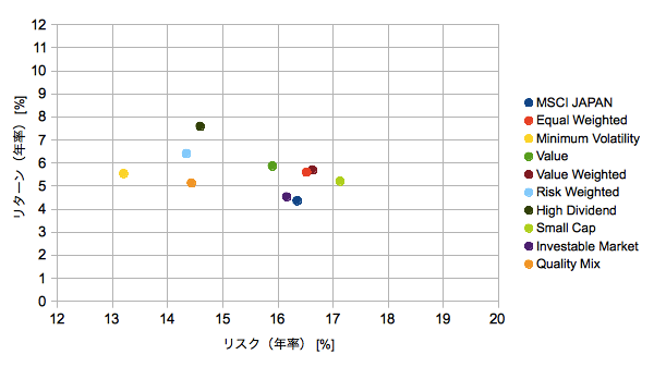 あと個人的には何でもスマートって付けりゃいいってものではないと思います。指数がスマートになる前にカンチガイでシグマを増長させる市場がスマートになるべきではないでしょうか。時価加重が残念なのも市場の思考回路や日頃の行いが残念なことの証明に他なりません。