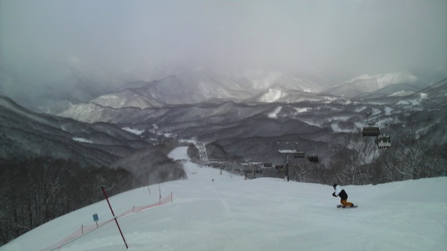 その後は例によってボッコボコになりますので昼には八方尾根みたいなつらい山になりました。ヒザが笑って足がつりそうで帰りのアクセルがつらかったです。圧雪部分や緩斜面はモコモコで終始滑りやすかったです。