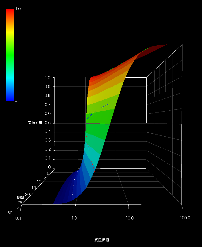 【三次元時間リスク確率分布(Z軸:累積分布)】
