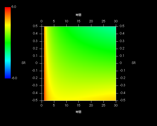 【時間依存(シグマ=15%、相乗平均リターン=5%の断面)】