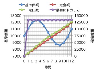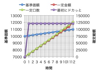 同じ積立額・口数(どちらも12万)という条件からスタート。