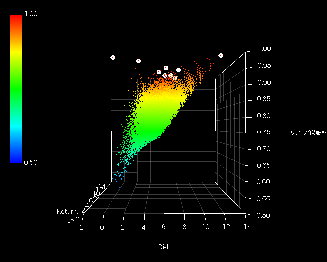 【リスク低減率(相関演算リスク/加重平均リスク)のPosマップ(三次元)】