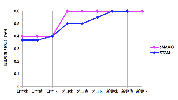 【STAMおよびeMAXISシリーズ単品の信託報酬(2014/06/06現在)】