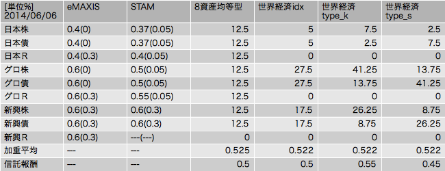 【単品のウェイト加重信託報酬と設定信託報酬(2014/06/06現在)】