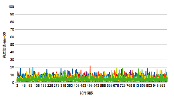 30年後の資産価値のバラツキを考えます。方法は次の通りです。