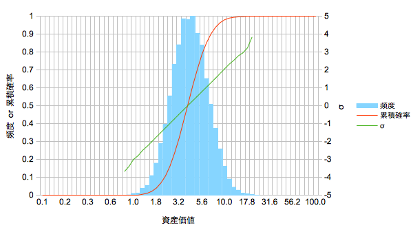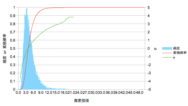 | 資産価値1の累積確率 |