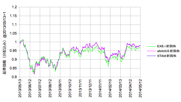 ・モーニングスターから2013/05/13-2014/05/12の基準価額をダウンロード