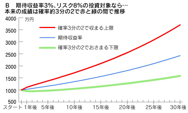 【期待収益率3%、リスク8%、コストゼロ】