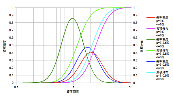 【期待収益率3%、リスク8%、コスト2.5%】