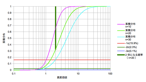 【2倍になるための時間(0σ、50.0%)】