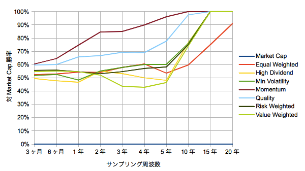 【時価加重に対する勝率の周波数依存】