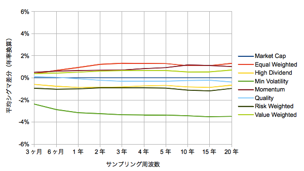 【時価加重に対するシグマ差分の周波数依存】