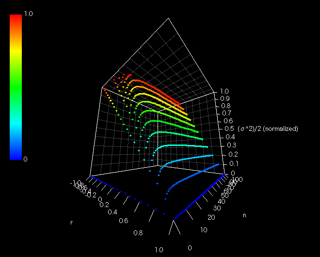 【消失リターンの戻り量((σ^2)/2で規格化)(三次元)】