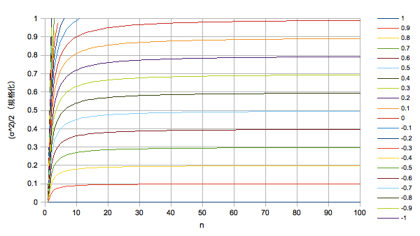 【消失リターンの戻り量((σ^2)/2で規格化)】